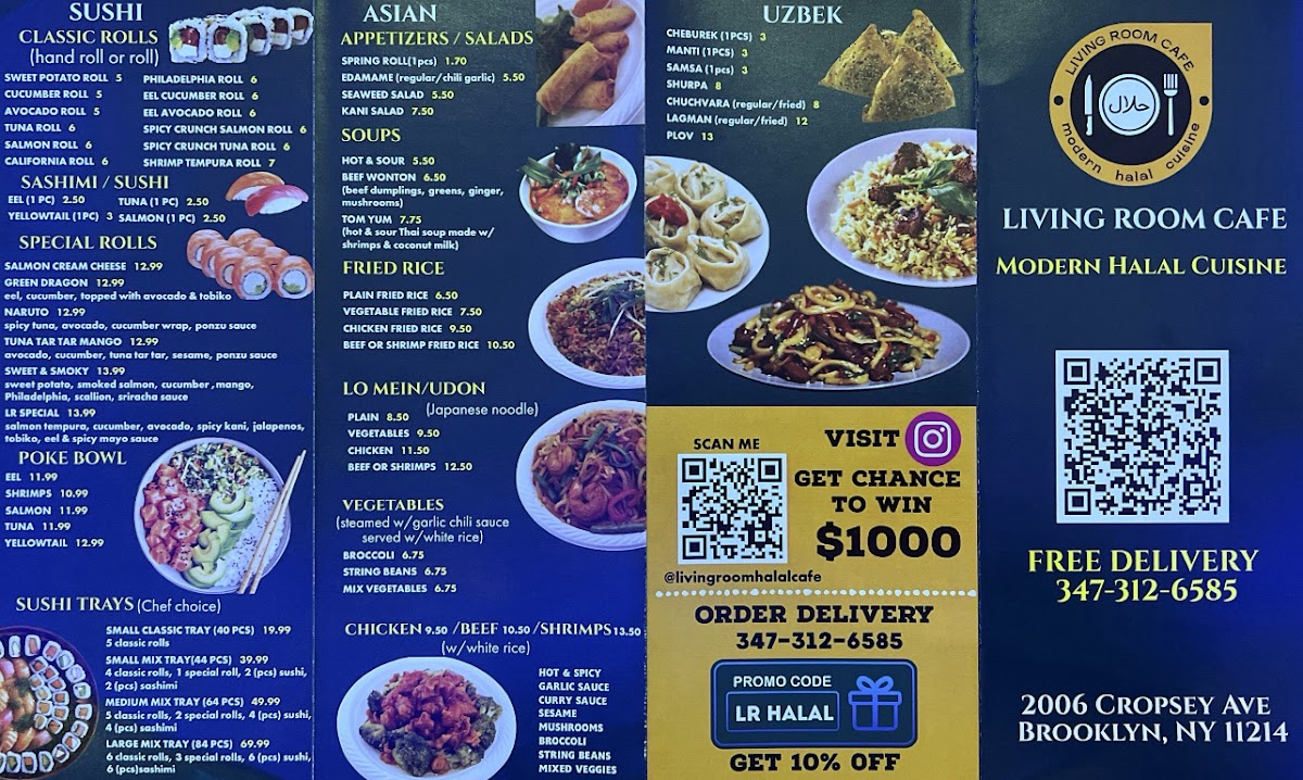 At Living Room Cafe Modern Halal Cuisine Menu, you’ll discover a blend of traditional flavors with a contemporary twist. Located on Cropsey Avenue in Brooklyn, NY, this cozy spot serves up a vibrant selection of halal dishes that will take your taste buds on a journey. From savory grilled meats to fresh, flavorful salads, there’s something to satisfy every craving. Whether you're looking for a quick bite or a more leisurely meal, the menu offers a delightful range of options. Each dish is crafted with care, using only the finest ingredients to bring out bold, satisfying flavors. Expect a relaxed atmosphere and dishes that feel like home, with the added excitement of modern culinary techniques. It's the perfect place to enjoy a meal with friends, family, or even just by yourself.